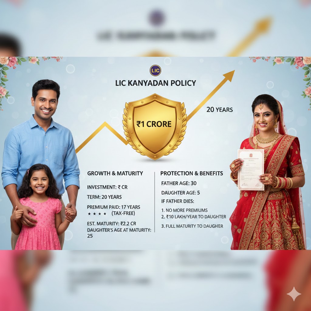 The LIC Kanyadan Policy (technically known as the LIC Jeevan Lakshya plan) is one of the most popular life insurance products in India, specifically designed to secure a daughter’s future education and marriage. Its unique selling point is the triple protection it offers in the event of the father’s (proposer’s) demise.